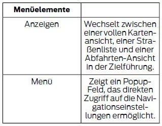 | Route abbrechen | Berühren Sie diese Taste, um die aktive Route zu stornieren. | |
