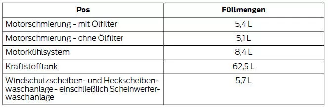 Beachte: Verwenden Sie nur Betriebsflüssigkeiten, die den aufgeführten Vorgaben und Spezifikationen entsprechen.